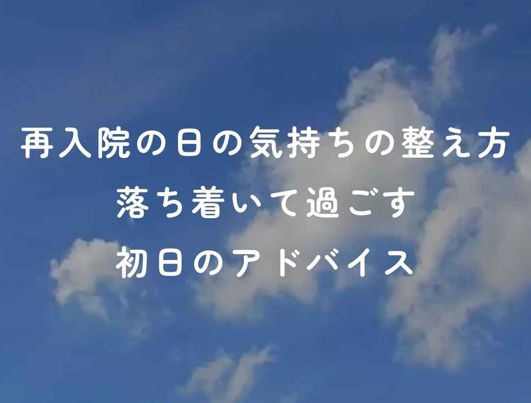 最初の一歩として、焦らず、自分が気持ちを楽にできることをして、心を落ち着かせる時間を作ること。それが再入院を乗り越えるための一つの方法です。焦らず、リラックスした状態で再入院生活をスタートさせるためにも、気持ちを少しでも楽にしていきましょう。